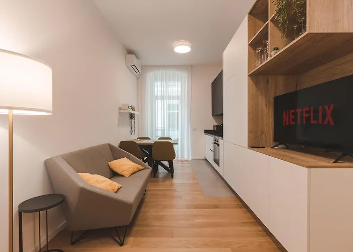 Stylish Apartment In The Center Of Trieste boasts a balcony and a seating area, complete with ironing facilities and an air conditioner, as well as a satellite TV. The accommodation is also furnished with a sofa and a work desk. Enhancing your comfort, a separate toilet and a shower can be found at the property. Furthermore, hair dryers and bath sheets is available.